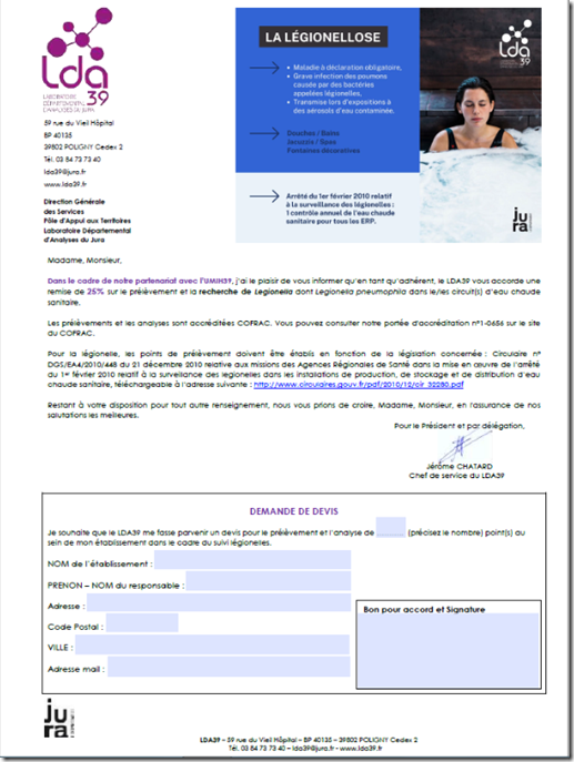 15 % de remise sur intervention pour les adhérents UMIH 39 (sur devis établi après visite)