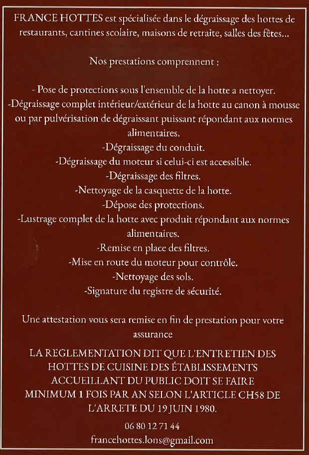 Spécialiste du nettoyage de hottes et réseaux de ventilation.